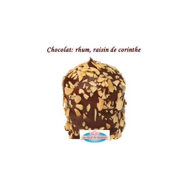 Boule mousse chocolat arômatisé au rhum avec des raisins de corynthe.